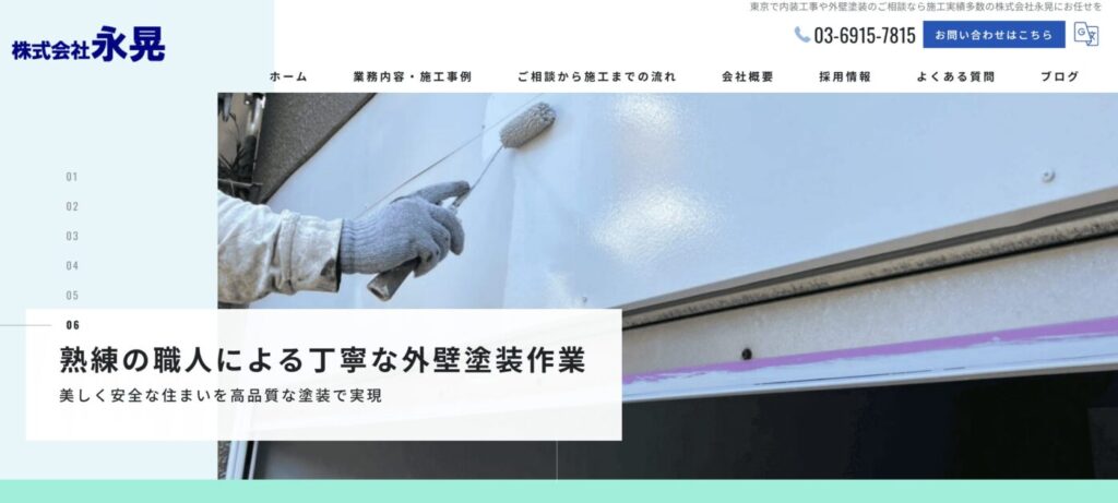 株式会社永晃は、板橋区を中心に地域密着で信頼される塗装のプロフェッショナルです。傷んだ外壁や屋根の塗り替えにより、新築時の美しさを蘇らせ、雨漏りなどのトラブルから家を守ります。