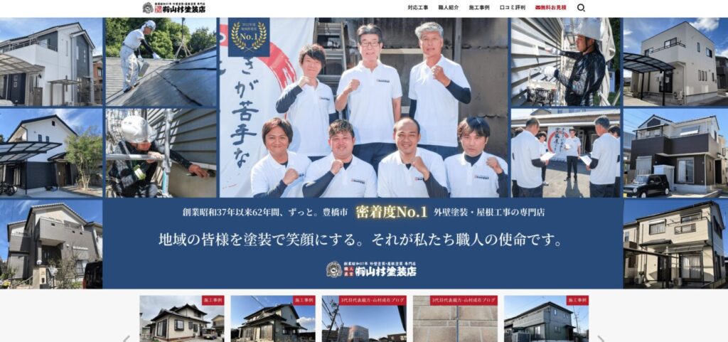 豊橋市で60年以上、3代にわたり外壁・屋根塗装を手掛ける山村塗装店です。初代から受け継がれる「思い」と「仕事の姿勢」を大切にし、地域に根差した安心の塗装工事を提供しています。